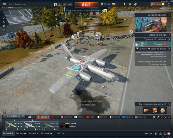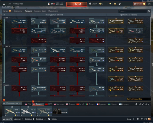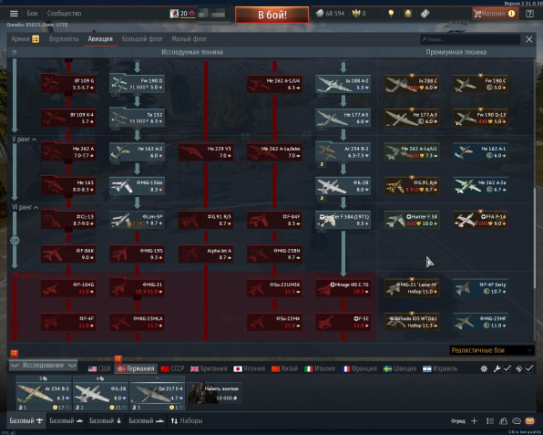 2)Глобал✈️Германия VI Ранг✈️Авиация От He 51 до Hunter F.58A ,20ур Лейтенант.С почтой.