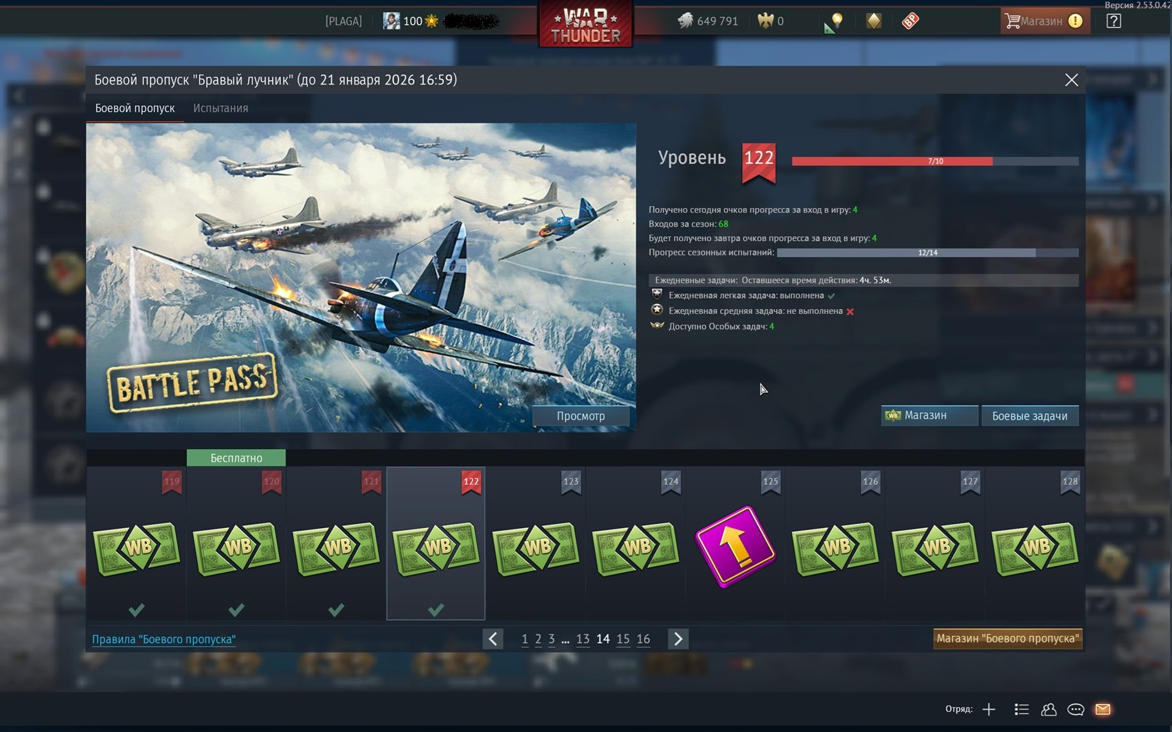 На момент 29.12.2025: Премиум-аккаунт на 55 дней; так же имеется БП 122-го уровня ( скрин ниже ).