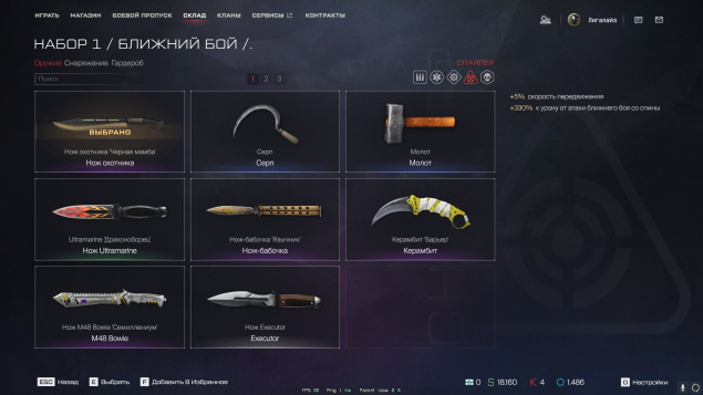 Ножи: Нож охотника «Черная мамба», Керамбит «Барьер», Керамбит «Комодо», Нож охотника «Город» Нож бабочка «Панда» Топор Демоноборец
