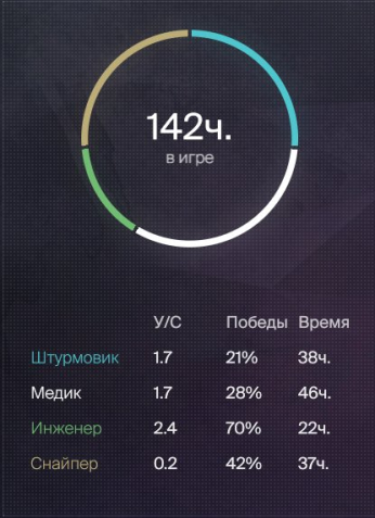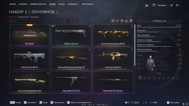 Мед: PA EG240, золотой Hunt group MH12, Panzer, золотой Browning, Золотой USAS-12, Золотой Garibaldi, MAG-7 Атлас (Медик отряда Горгона, Медик отряда «Фантом»)