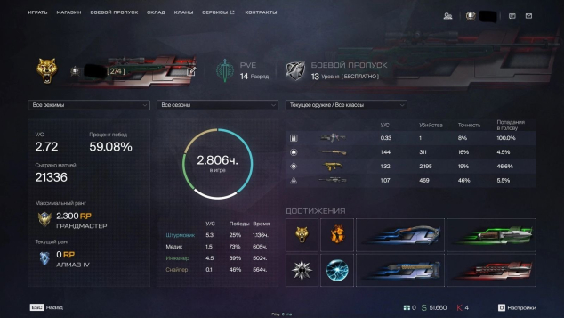 Подробное описание: ЛИЧНЫЙ АККАУНТ, 100+ РАНГ, ЕСТЬ МНОГО ДОНАТА, А ТАКЖЕ ЗОЛОТО, КРАСИВЫЙ НИК + ОЧЕНЬ МНОГО РЕДКИХ ДОСТИЖЕНИЙ (1000 мясорубок и тд) И ВСЯКИХ НИШТЯКОВ, M14 Crazy Horse золотая, type 97 «фобос» и тд. 3 аккаунта на одной почте в связи с объединением серверов и на каждом много доната. Топовая, нафармленная статистика, привязка vk play (только vk id)