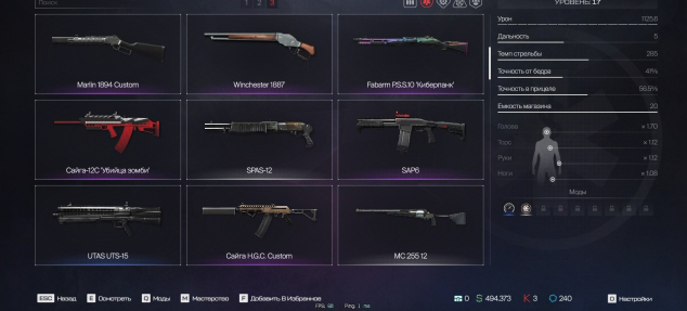 Также есть Honey badger Евро-2016, SIG MPX,Winchester 1887,Marlin, FN Scar Элита, M 249 Para и ДР.