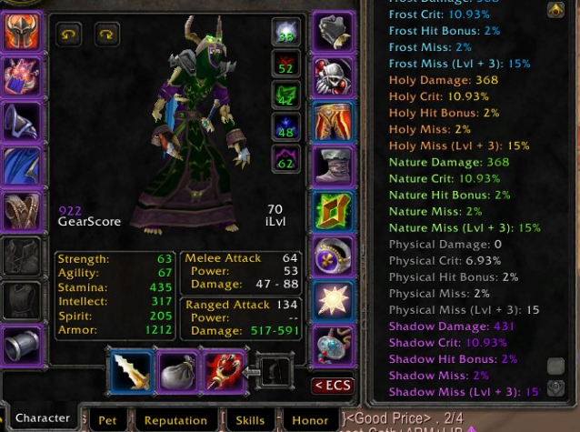 Подробное описание: Warlock 60lvl, game time 40/12/25 gs934 ,t2 5\8