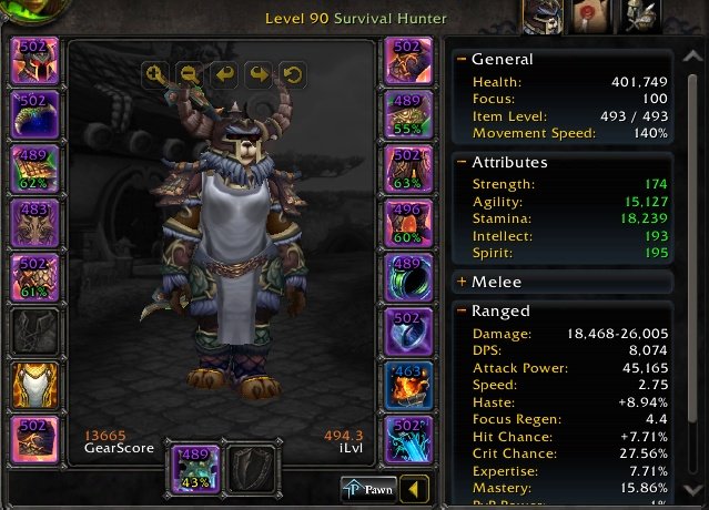 Краткое описание: Pandaren 90 Hunter 493 iLVL