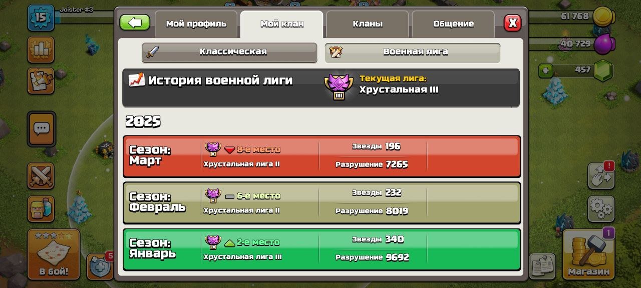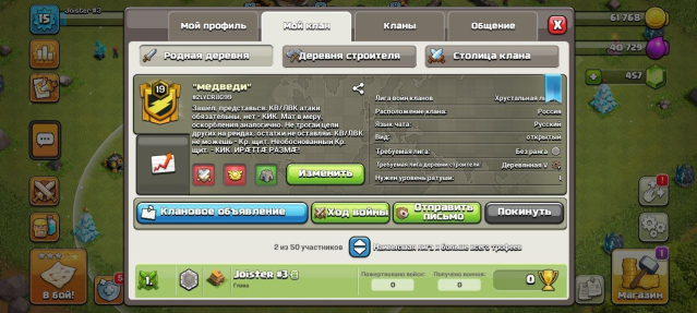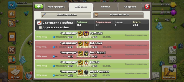 Краткое описание: 🔮 НАЗВАНИЕ: " медведи " 🔮 ТЕГ #2LYCR8G99 🔮 ЛИГА ХРУСТАЛЬНАЯ III 🔮 СТАТИСТИКА КВ: 161/81/1 🔮