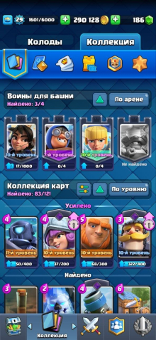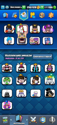 🔮На аккаунте 4200 кубков, 290 000 золота, 180 гемов, 29 Уровень, 10йур башни, 21 эмодзи. 83 карт из 121🔮