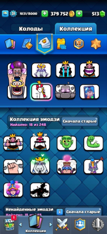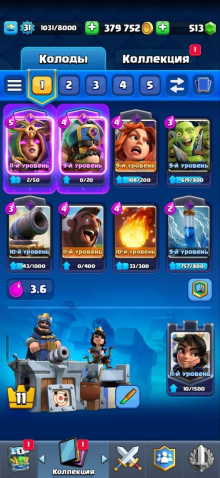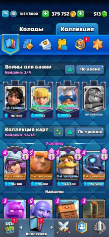 🔮На аккаунте 4600 кубков, 350 000 золота, 500 гемов, 31Уровень, 11ур башни, 18 эмодзи. 96 карт из 121🔮