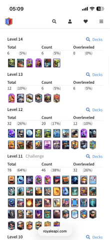 💎 6 карт 14 lvl — мощная база для высоких арен.