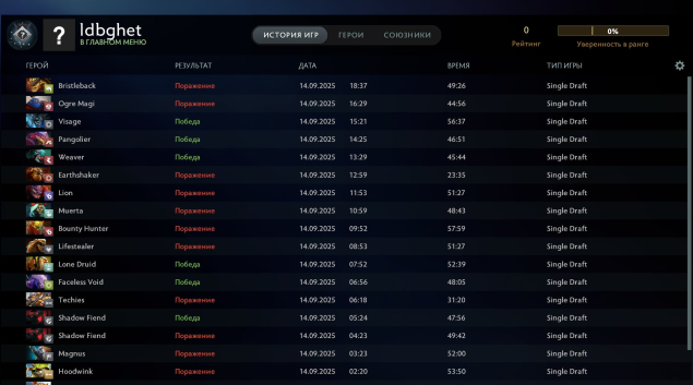 📸 Скрин захода в первую рейтинговую игру — внизу