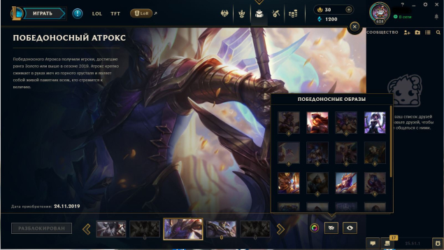 Так же в наличии 5 эксклюзивных победоносных скинов (за рейтинг) + несколько скинов за 5 уровень репутации