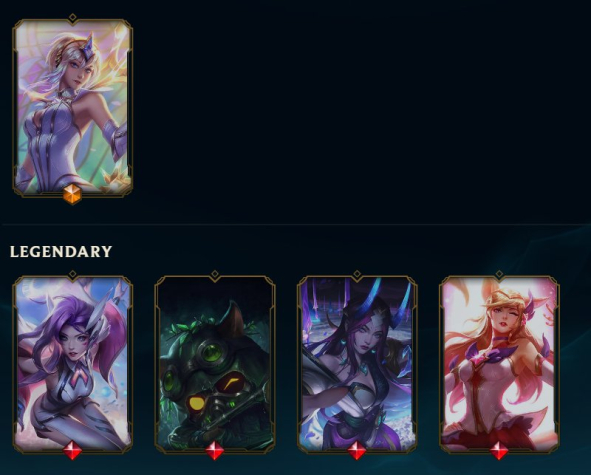 Легендарные Скины: Боевой голубь Серафина, Звездная защитница Ари, Тимо из отряда ''Омега'', Дух цветения Ирелия