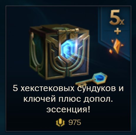 Краткое описание: 🔎【RU】🎁🔑НАБОР 5 Хекстек сундуков+ключ+эссенция! 975 RP😍Подарком🛡️Безопасно + Офиц RP✔️Добавься сейчас