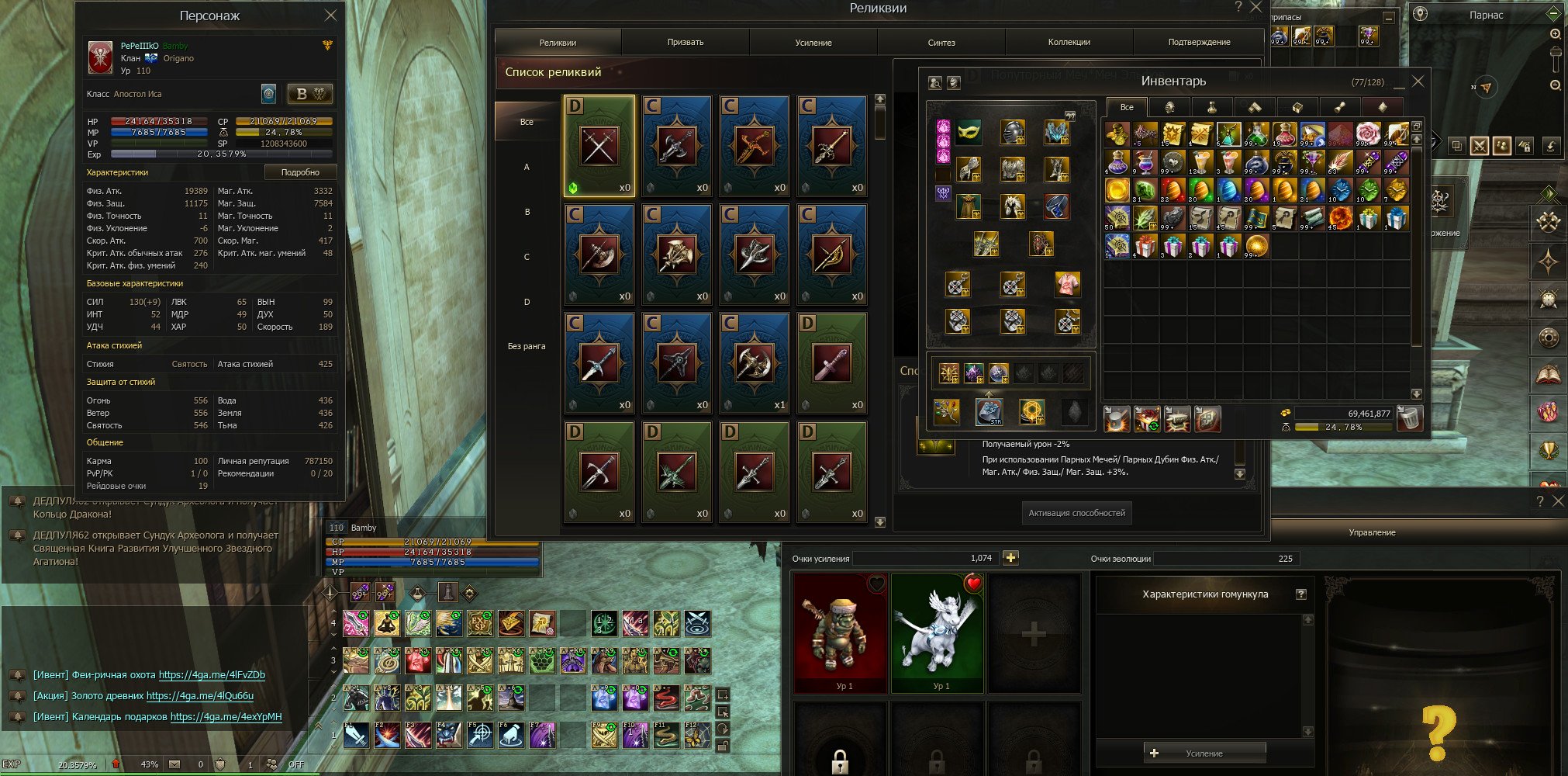 Описание: Варг 110, саб класс Чернокнижник 109. Одет в Благ.сет почета (1к рублей), очень много расходки (3к каждого), камни рун, пасивка за укр. 4 колы за Золотые сферы. красный Танна 5 лвл 100 %, умения все макс, релик С топ кости, Привязка на вашу почту.