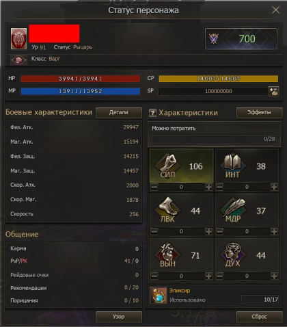 Описание: Варг, 91 лвл, экипировку можно увидеть на скринах ниже, так же в сломе +1 ак, +8 пояс.