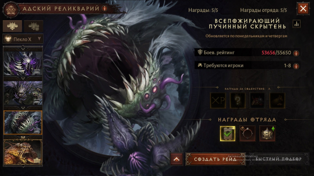 🌟Уровень адского реликвария 60.Убит 😈ВСЕПОЖИРАЮЩИЙ ПУЧИННЫЙ СКРЫТЕНЬ😈 на П10, открыт П10 для исследования.