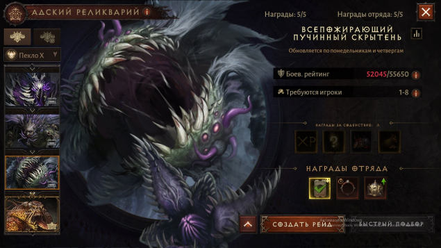 🌟Уровень адского реликвария 42.Убит 😈ВСЕПОЖИРАЮЩИЙ ПУЧИННЫЙ СКРЫТЕНЬ😈 на П10, открыт П10 для исследования.