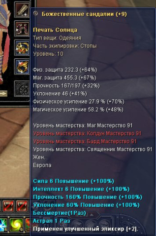 Краткое описание: Сан фулл сет брони +9 10д
