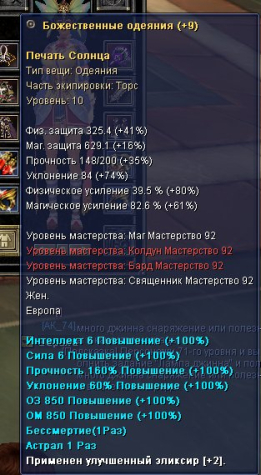 Подробное описание: Сан фулл сет брони +9 10д