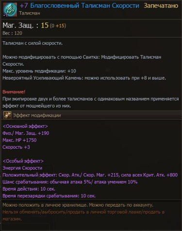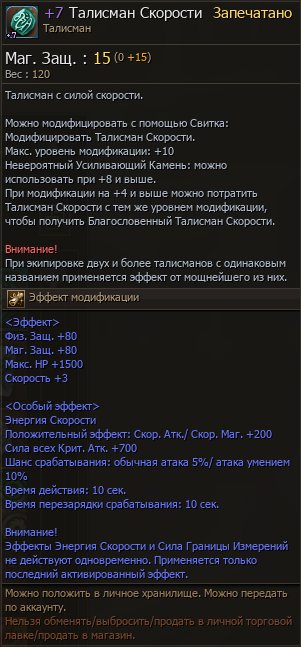 Название: ⚜️ Талисман Скорости +7 (могу Благословенный +7 — цена х2).