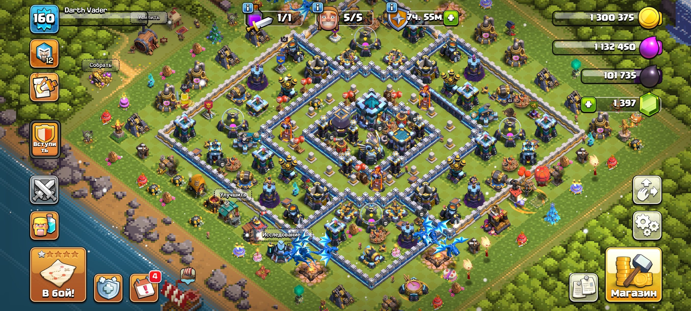 Уровень Ратуши: 13Краткое описание: ✨Быстрая ВЫДАЧА✨|⭐[ 13 ТН ]⭐|💫Герои 66/61/42/37/10 💫| 5 строителей 🔨 | 1397 гемов💎