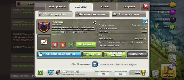 Подробное описание: 🛡️ Топовый клан 29 уровня 🛡️