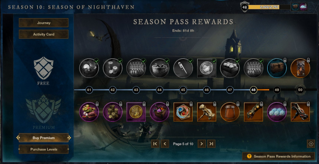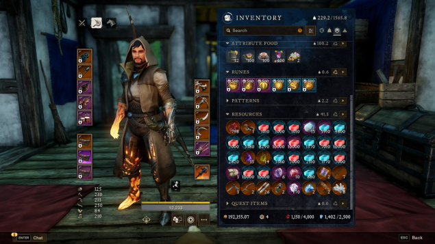 Комплекты снаряжения: PVP Set 750 GS, Luck Set 650 GS, Engineer Set 6/6, Arcanist Set 6/6, Armorer Set 2/6, Stonecutters Set 5/5, Smelters Set 5/5, Tunner Set 5/5, Woodworkers Set 3/5