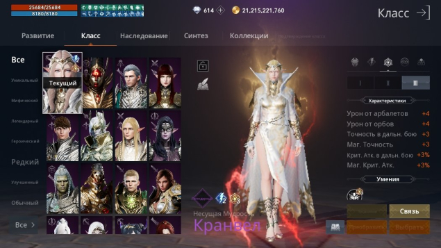 Другие Характеристики: Крит Атака 133%, Шанс Двойного Урона 131%, Шанс Тройного Урона 28%, Блокировка Оружия 77%, Увеличение Урона от Оружия 233%, Увеличение Урона от Умений 234%, Сопротивление Оглушению 37%, .