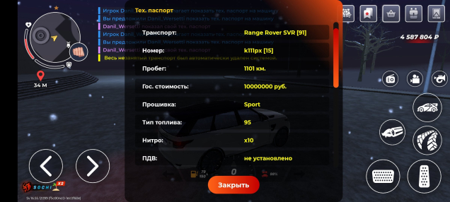 2.Встречаемся в игре, едим на на место встречи, о котором договоримся тут в чате и я вам передам этот автомобиль через обмен, тоесть Range Rover SVR, обмениваю с вами на ваш ЗАЗ(это не способ вас обмануть, иначе вам нужна сумма около 5кк, так как нельзя продавать машину ниже ее Госс. цены)