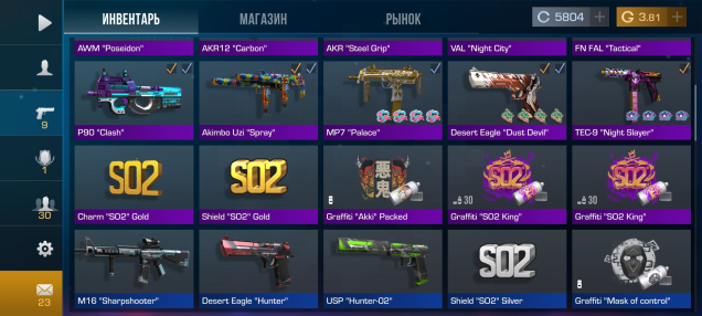 В наличии много редких скинов на ножи 🔪 и оружие 🔫 с крутыми наклейками ✨
