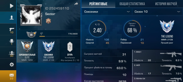 Звание: LegendКраткое описание: 8-9 сезоны элита-легенда, M9 «Amber Koi»