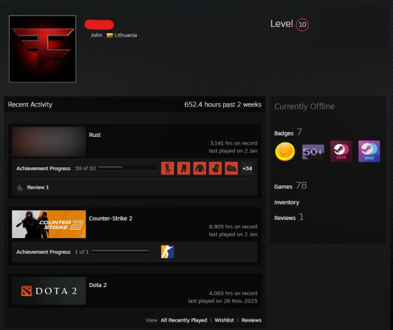 купил(а) Аккаунты с играми Steam за 2000 ₽
