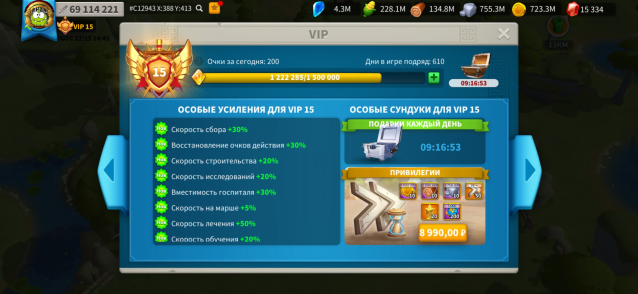 Краткое описание: Боевой т5 аккаунт, 15 вип, 1,5 миллиарда кп, 3 марша, аккаунту 600 дней