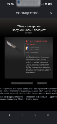 Подробное описание: в инвентаре есть нож и пару скинов