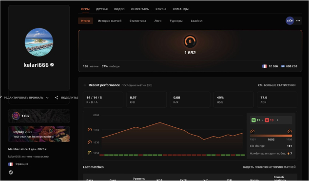 Краткое описание: 🌈136 МАТЧЕЙ🔥1692 ELO🟢PRIME STATUS🟪🍎ВЕРИФИКАЦИЯ ПРОЙДЕНА🔥💎ОФОРМЛЕНИЕ💎🔥☘️🍎8 LVL FACEIT✅⭐️🔥