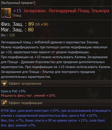 Название: +15 Легендарный плащ Эльмора (ПВЕ) 5% ПВЕ 10% мощность умений