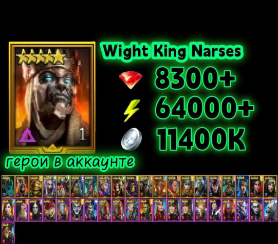⚡️ ПОЛНЫЙ ДОСТУП ⚡️ Wight King Narses ⚡️ 8300+ Рубинов ⚡️ 64000+ Энергия ⚡️ СМОТРИТЕ ОПИСАНИЕ ⚡️Эпических героев: 21
