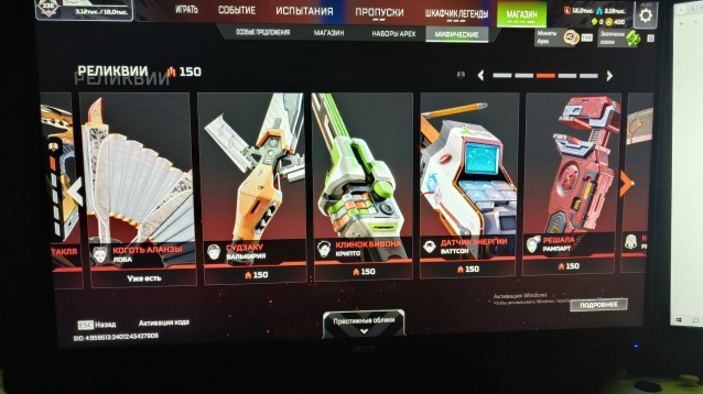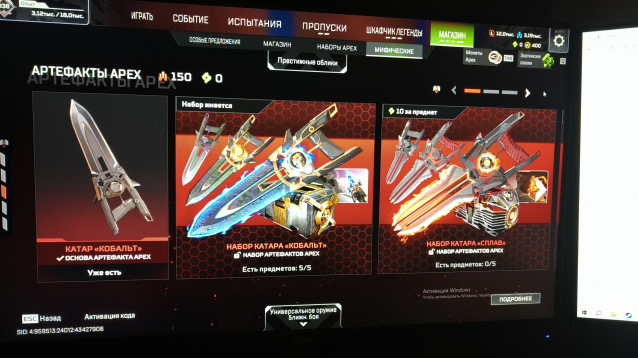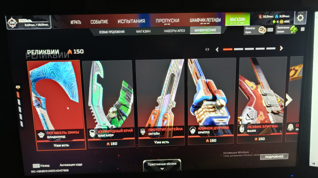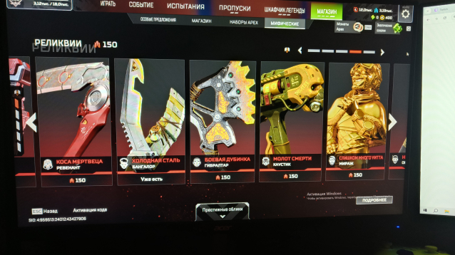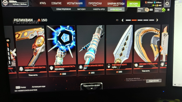 Реликвии: Лоба веер, Бангалор нож, Новый нож на Октейна, новая коса на Ревенанта Кобалтовый катар, Ножи Сиара