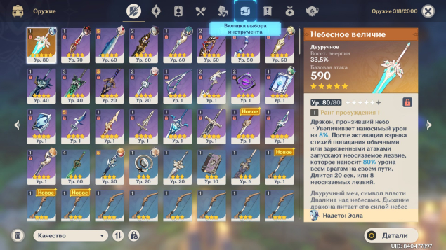 ❄️Все легендарные персонажи, оружия и созвездия на легендарных персонажей видны на скринах, которые прикреплены чуть ниже подробного описания