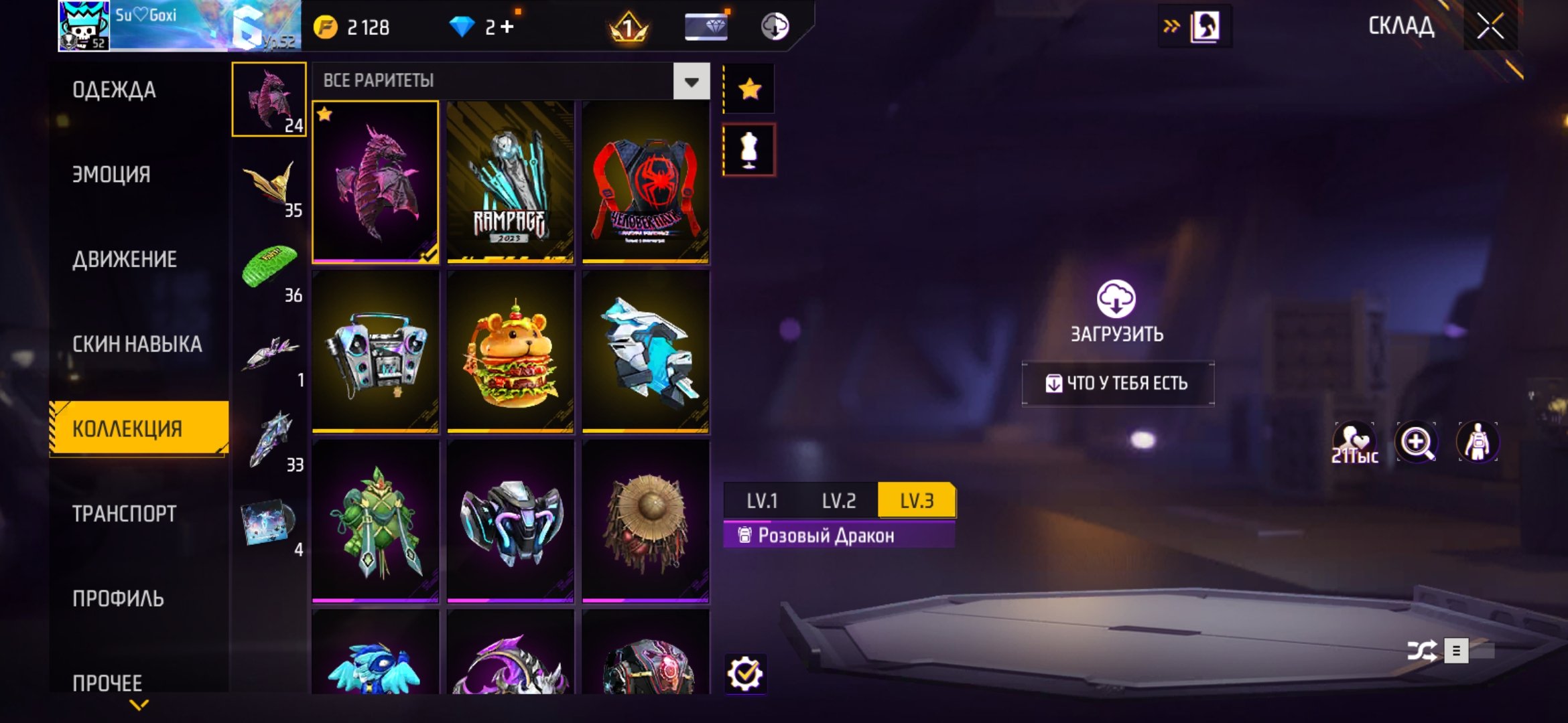 Подробное описание: Было 6 мастеров (2 БО, 4 КБ), 2 эво, 109 скинов на оружие, 1 костюм, 59 причесок, 36 масок, 15 гримов, 100 торсов, 72 штанов, 59 обуви, 16 эмоций, 24 рюкзаков, 35 лут боксов, 36 парашютов, 1 скайджет, 33 доски. Имеются и донатные вещи для СНС и т.д.