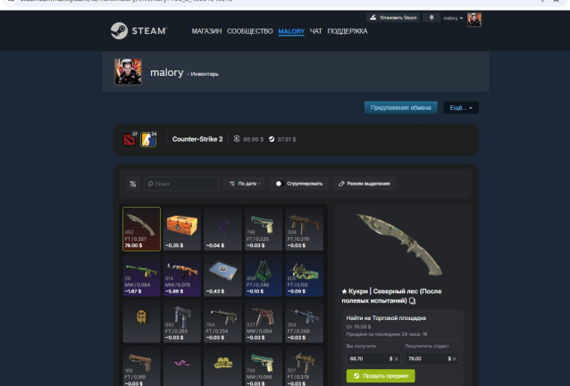 Подробное описание: Покупал аккаунт ради кс2 прайм, 27-го декабря купил нож кукри на ксго маркете, но трейдбан до первого пополнения, продаю срочно, по причине нужды денег