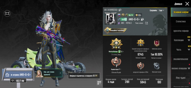Подробное описание: Продаю аккаунт есть много мификов много разных скинов на оружие и транспорт на аккаунте есть м416 шут и т.д
