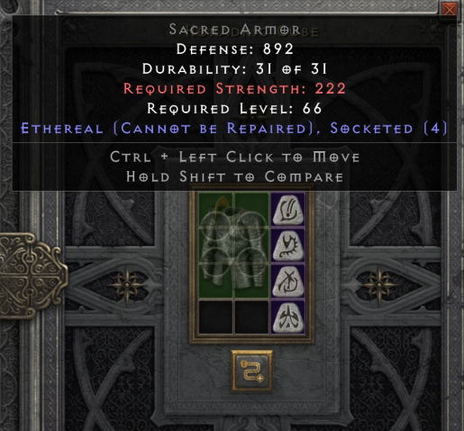 2. Если интересует эфирная Fortitude (руны El Sol Dol Lo + база 4 сокета: Eth Archon Plate или Eth Sacred Armor) будет стоить дороже, пишите, сориентирую по цене.