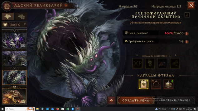 🌟Уровень адского реликвария 21.Убит 😈ВСЕПОЖИРАЮЩИЙ ПУЧИННЫЙ СКРЫТЕНЬ😈 на П9, открыт П10 для исследования.