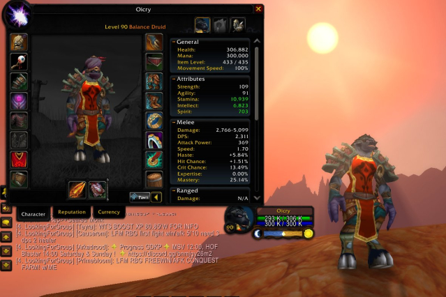 Краткое описание: Друид Таурен 90 lvl, Сова, 310% форма полета, добыча+трава 600, уровень предметов 430