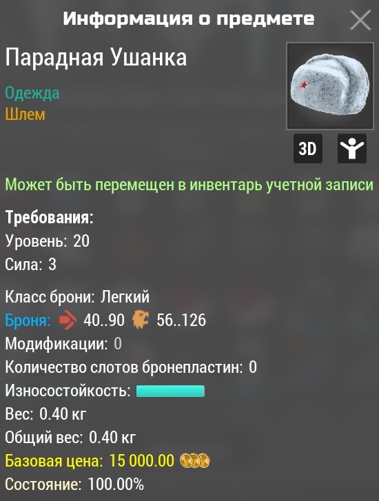 Сервер: RU-8Краткое описание: ✨🟢 Парадная ушанка 🟢 Любой сервер 🟢✨