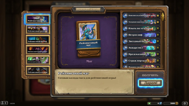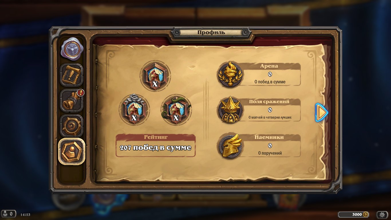Краткое описание: 🍀🍀3000 золота🍀🍀45-60 паков(5 catch-up)🍀🍀4000 пыли🍀🍀2-5 билетов арена🍀🍀доступен донат