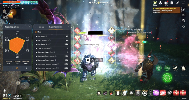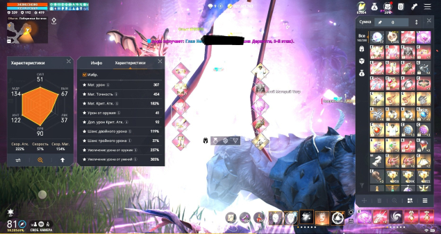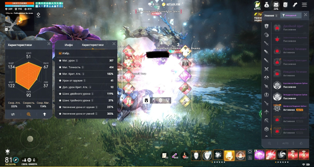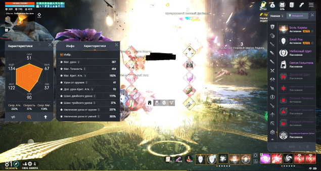 Другие статы: Крит. Атк. 159%, Шанс Двойного Урона 94%, Шанс Тройного Урона 19%, Блокировка Оружия 84%, Увеличение Урона от Оружия 154%, Увеличение Урона от Умений 224%, Сопротивление Оглушению 81%, Шанс оглушения 50%