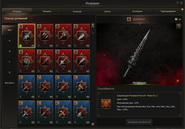 • Умения Забытой силы: Физ.атака 30, Физ.Маг. защита 30, Мастер 30, Специалист 30, Стихия 30, Гигантов 10