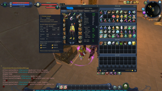 Подробное описание: фул ап бижа 30, пояс 40. 160к апа. +12 кенж грации +11 меч атина. фул сет плавника на +5 атаки камнями.