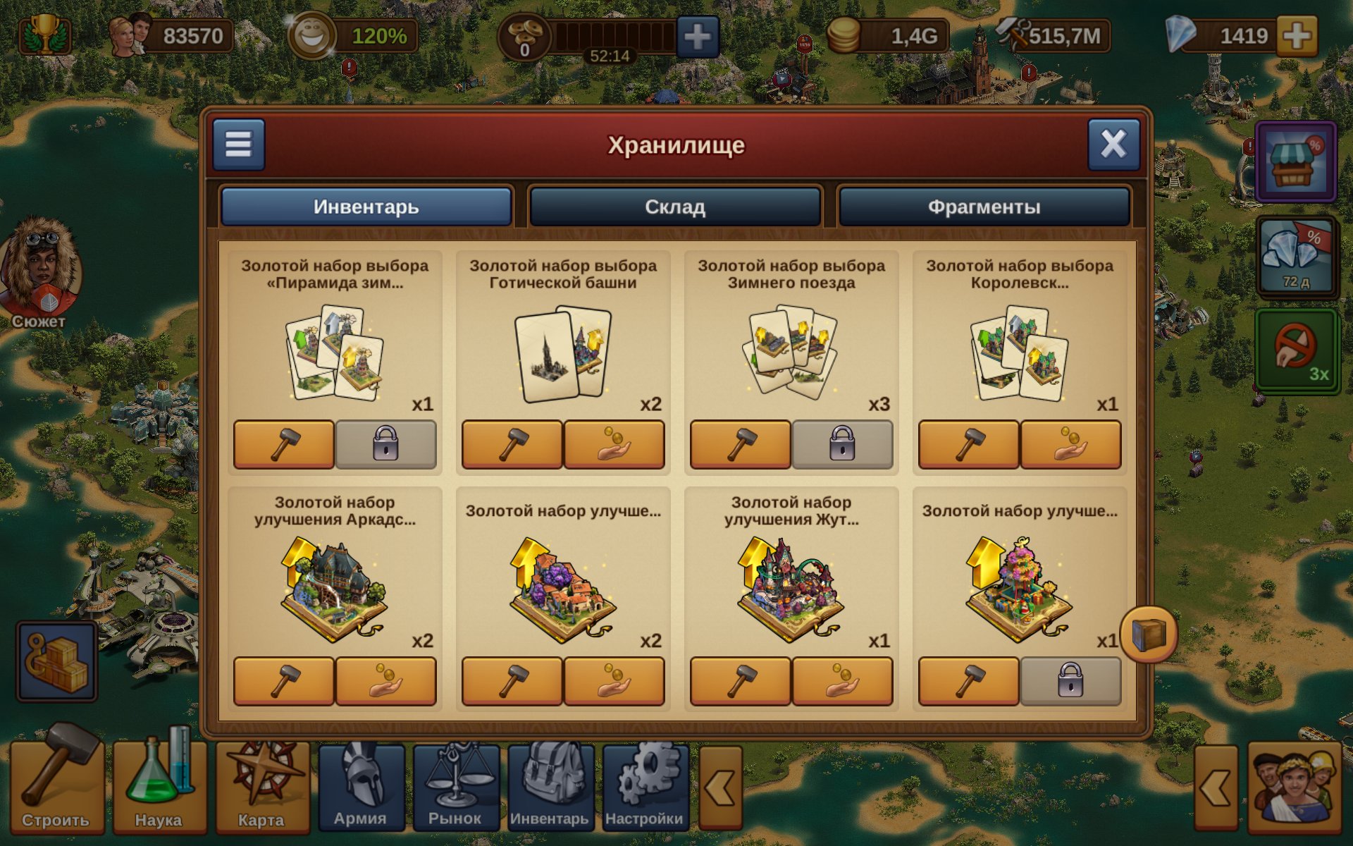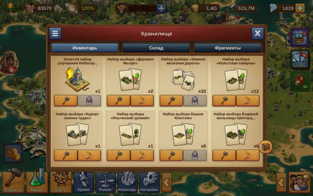 Подробное описание: Аккаунт развивал 4 года. В инвентаре очень много наборов особых зданий и товаров, есть чертежи на все вс. Аккаунт боевой.